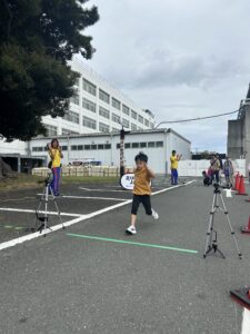 そして、本イベントに日本陸連RIKUJO JAPANさまからキッズデカスロンチャレンジのキットをお借りして10mのタイム計測とジャベボールのターゲットスローを実施しました。