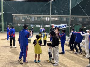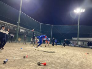 その後、ポイントをおさえながらより遠くに全力投てき!新井Cも混ざって迫力の投げを披露し参加者の皆さんを驚かせていました。