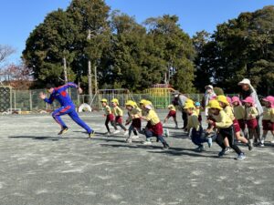 子供たちは元気いっぱい、隣接する小学校のグランドをお借りして目一杯からだを動かしました。
